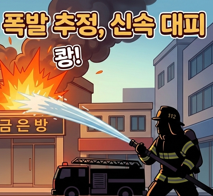 * 유독가스 주의: 가스 폭발 화재는 유독물질 배출이 많으므로 연기 반대 방향으로 신속히 탈출해야 합니다.