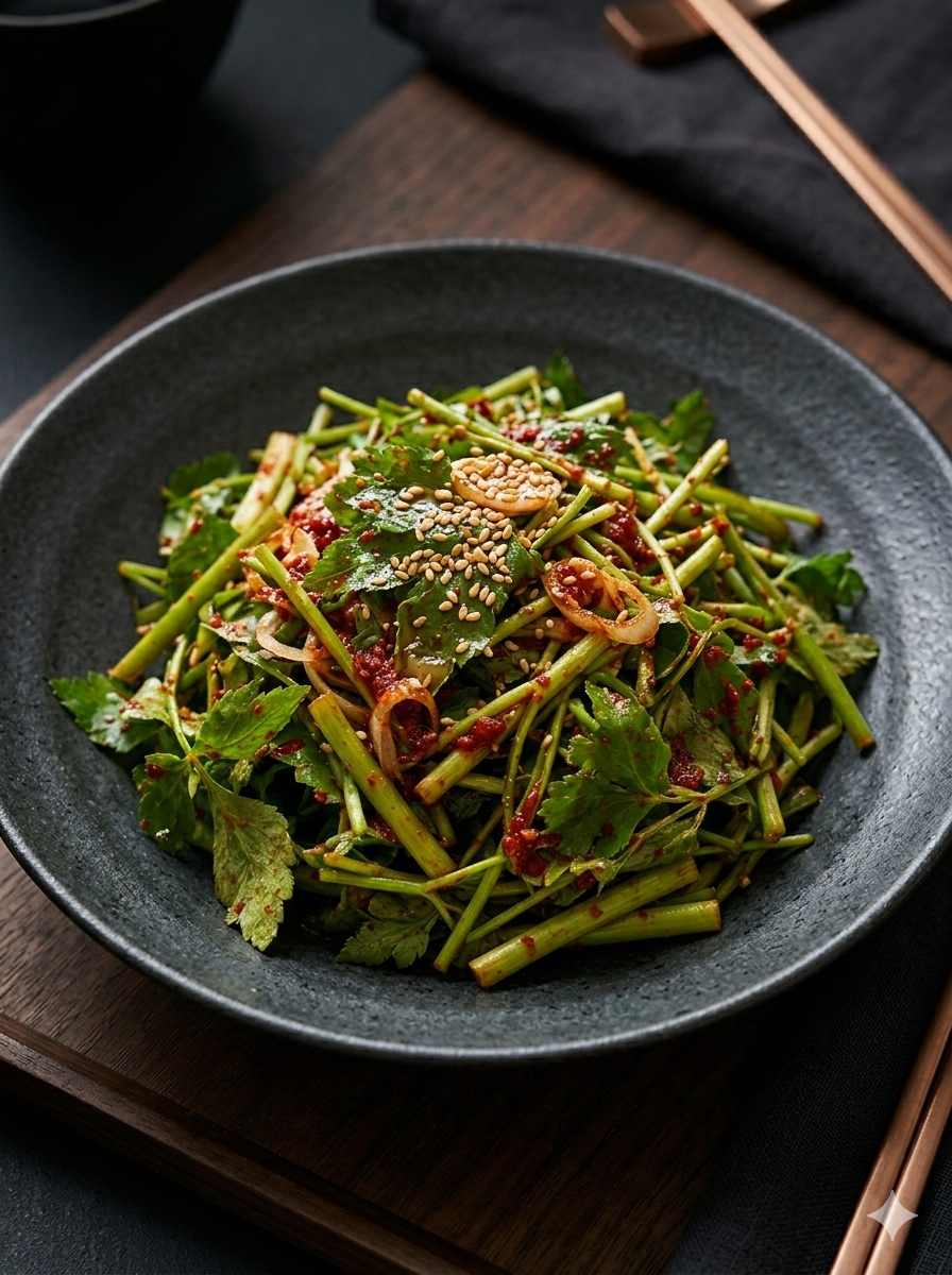 4. 아삭함의 비밀! 미나리 겉절이 황금 레시피 (5분 완성)