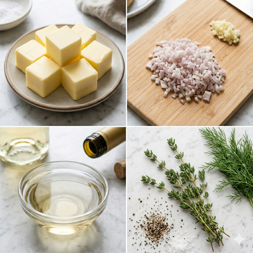 * 와인의 종류: 반드시 '드라이(Dry)'한 화이트 와인을 사용하세요. 당도가 높은 와인은 가열 시 캐러멜화되어 소스의 깔끔한 산미를 방해합니다.