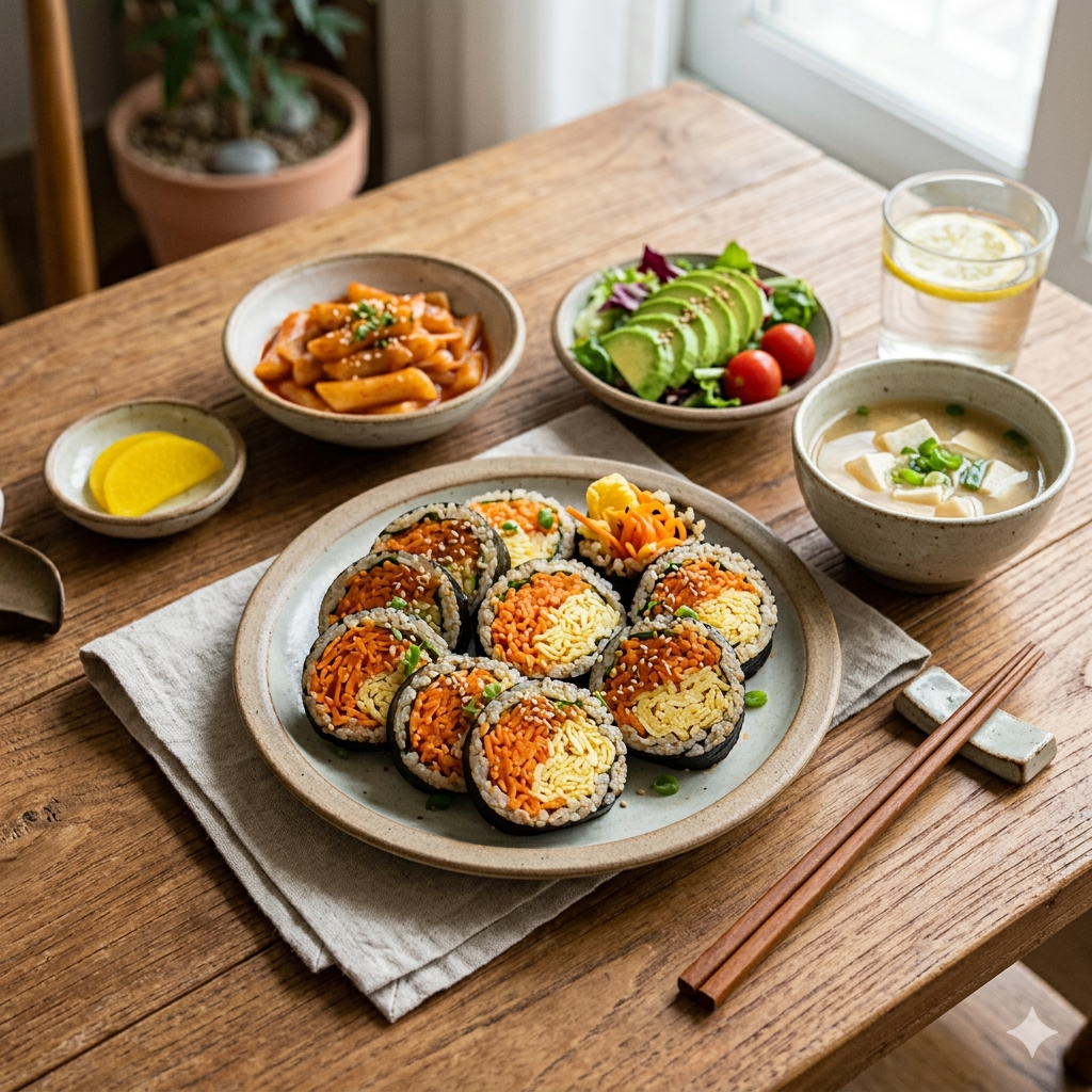 당근라페 김밥은 그 자체로도 훌륭하지만, 다음과 같은 메뉴와 곁들이면 맛의 깊이가 더해집니다.