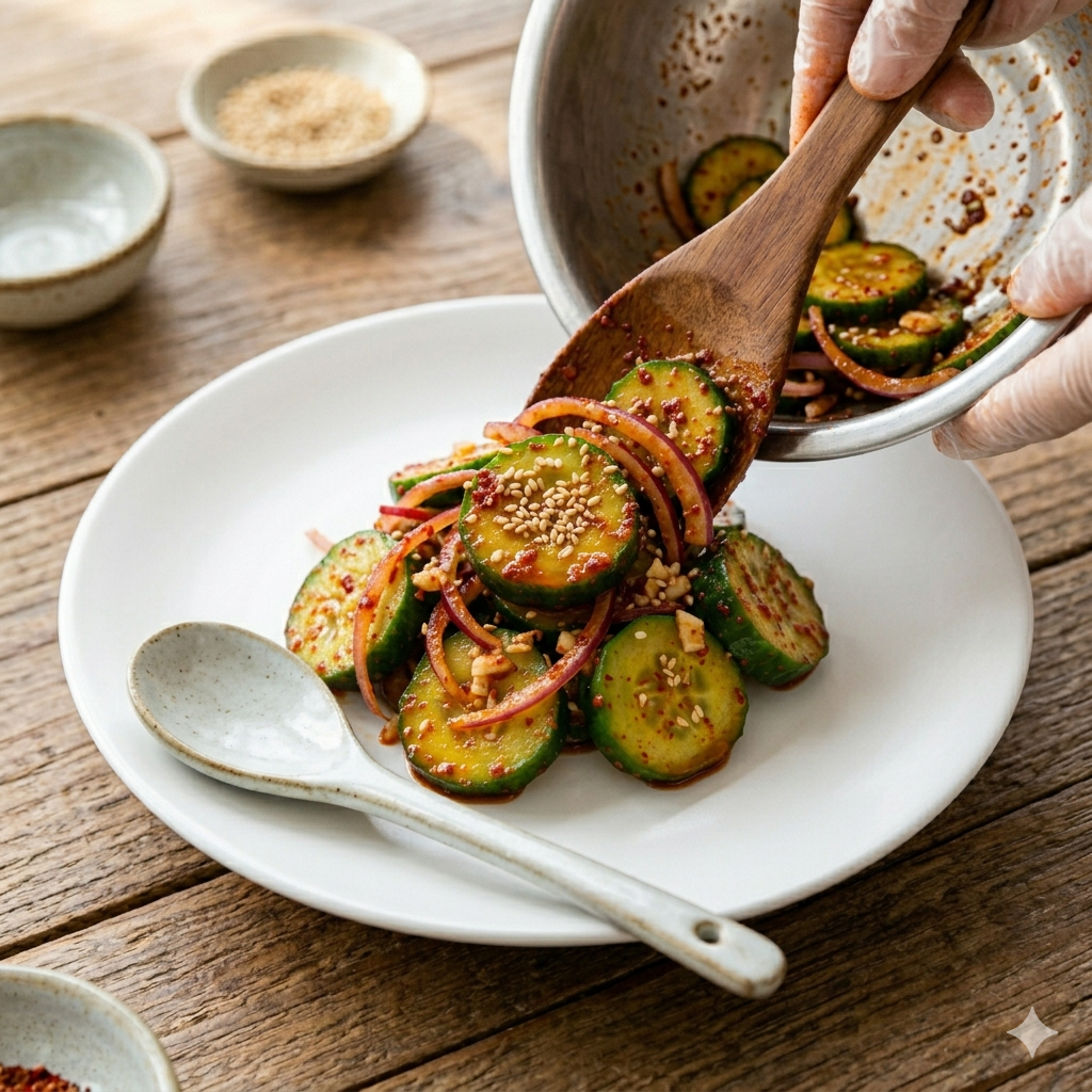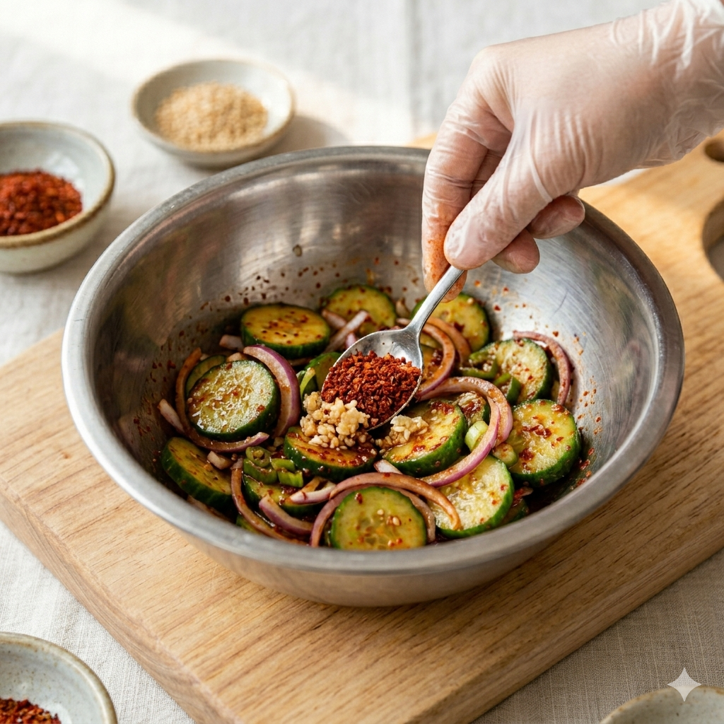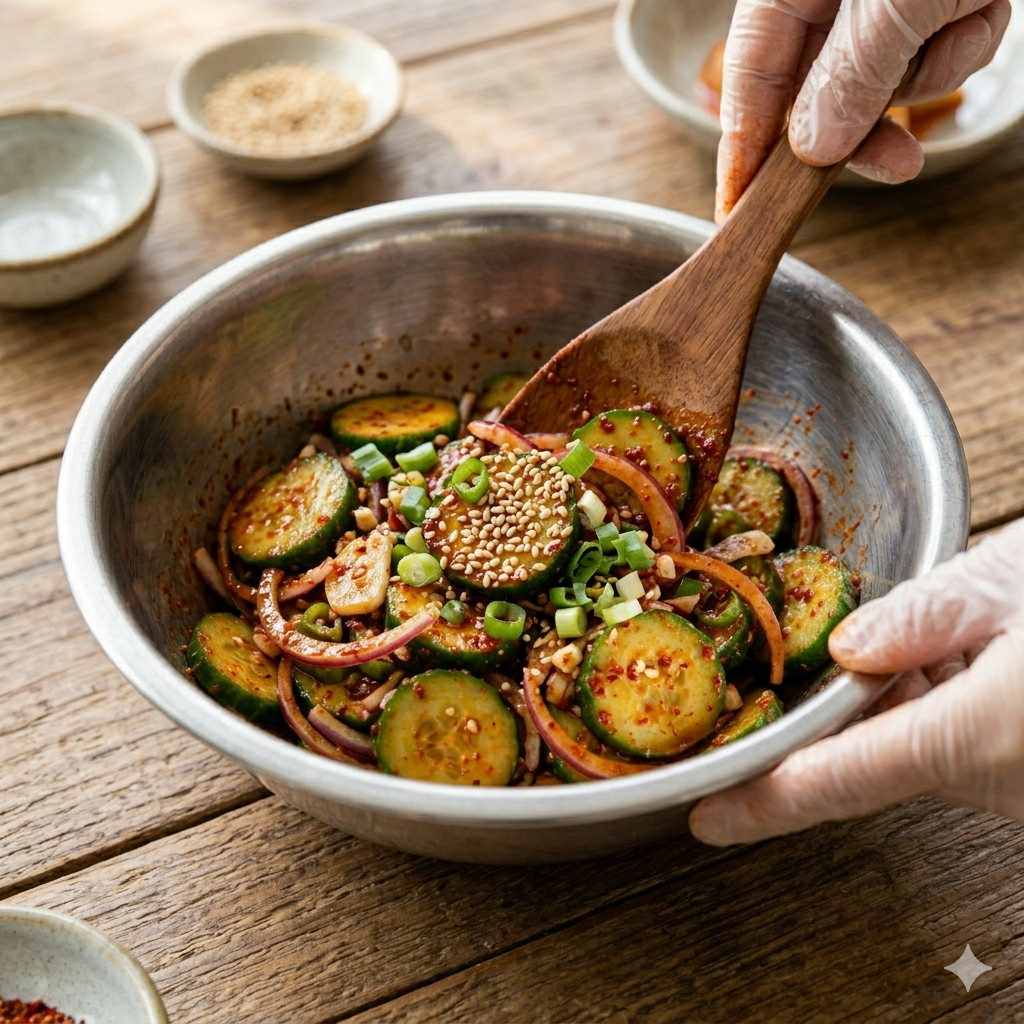 * 물 생김 방지: 바로 드실 거라면 상관없지만, 두고 드실 경우 오이를 소금에 10분 정도 절인 뒤 물기를 꽉 짜서 무쳐보세요. 시간이 지나도 아삭함이 유지됩니다.