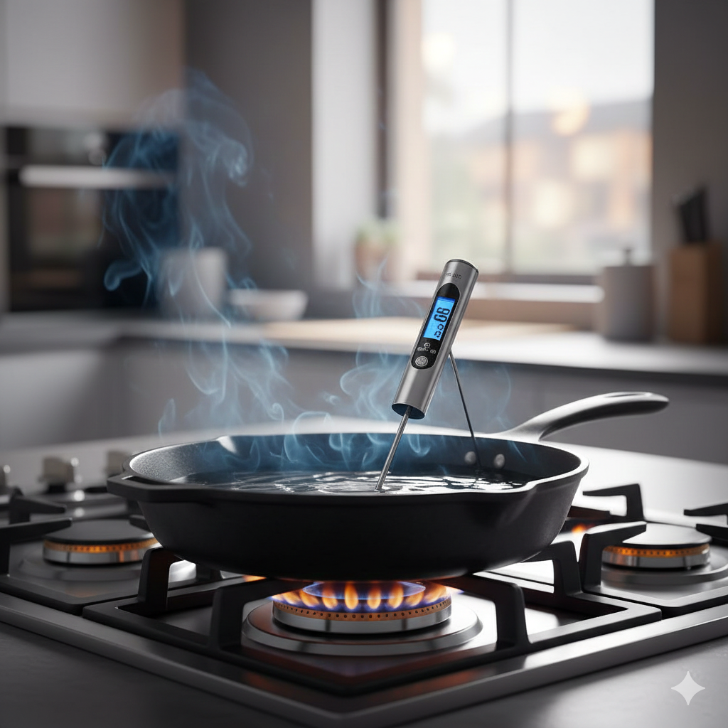 : 빈 팬을 고온으로 달군 후 오일을 넣으면 순간적으로 발연점에 도달할 수 있습니다.