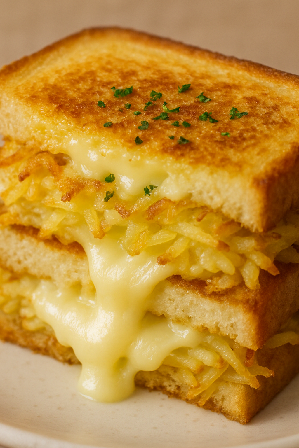 구운 빵 위에 감자를 올리고 치즈를 얹습니다. 다시 식빵을 덮은 후 약불에서 치즈가 녹을 때까지 살짝 구워줍니다.
