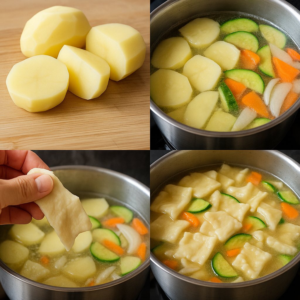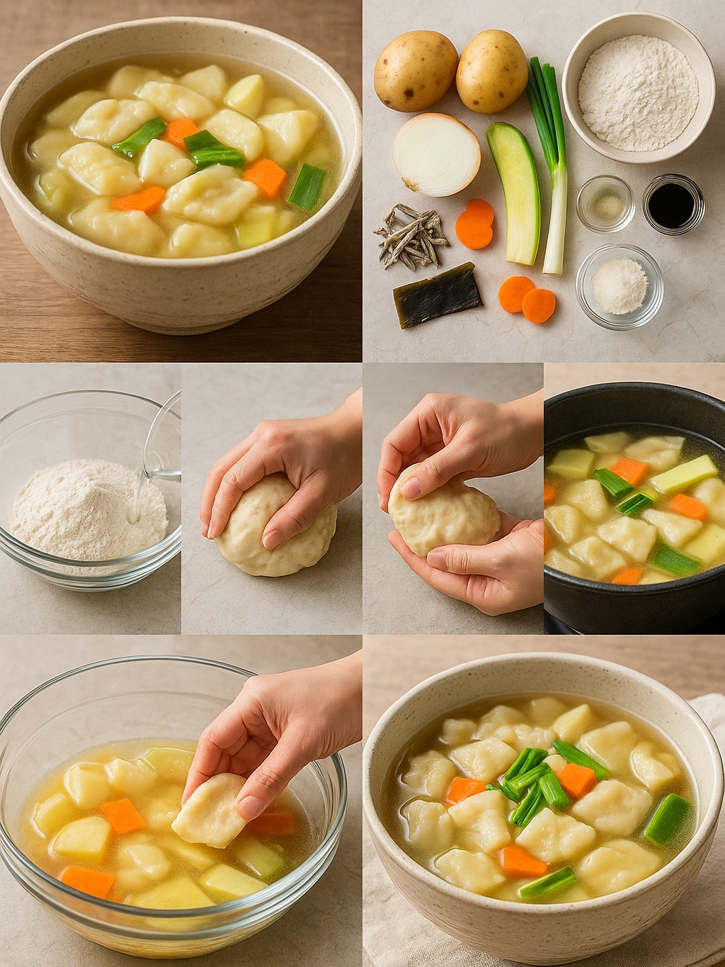 쫄깃한 반죽과 부드럽게 퍼지는 감자의 식감, 멸치육수의 깊은 풍미까지 조화를 이루는 이 요리는 한국인의 입맛에 꼭 맞는 전통 수제비 레시피입니다.