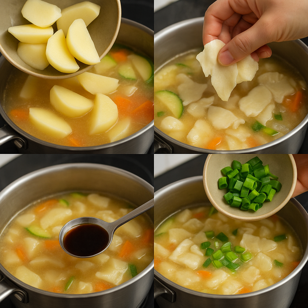 쫄깃한 반죽과 부드럽게 퍼지는 감자의 식감, 멸치육수의 깊은 풍미까지 조화를 이루는 이 요리는 한국인의 입맛에 꼭 맞는 전통 수제비 레시피입니다.
