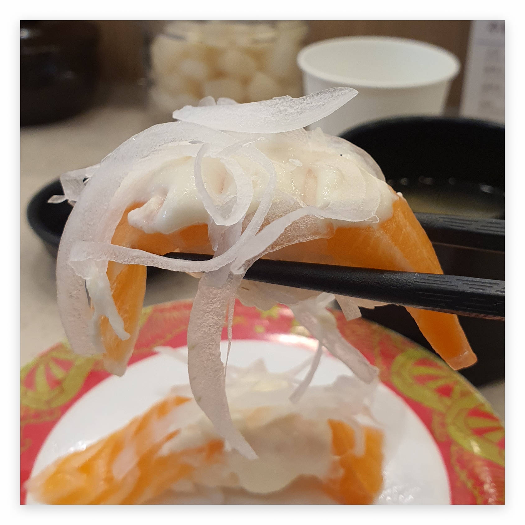 셰프의 선택으로 구성되어 회전초밥 레일에는 그날의 가장 좋은 재료로 만든 다채로운 요리를 맛볼 수 있게 계속 준비되어 레일 위에 초밥들이 올라갔어요.