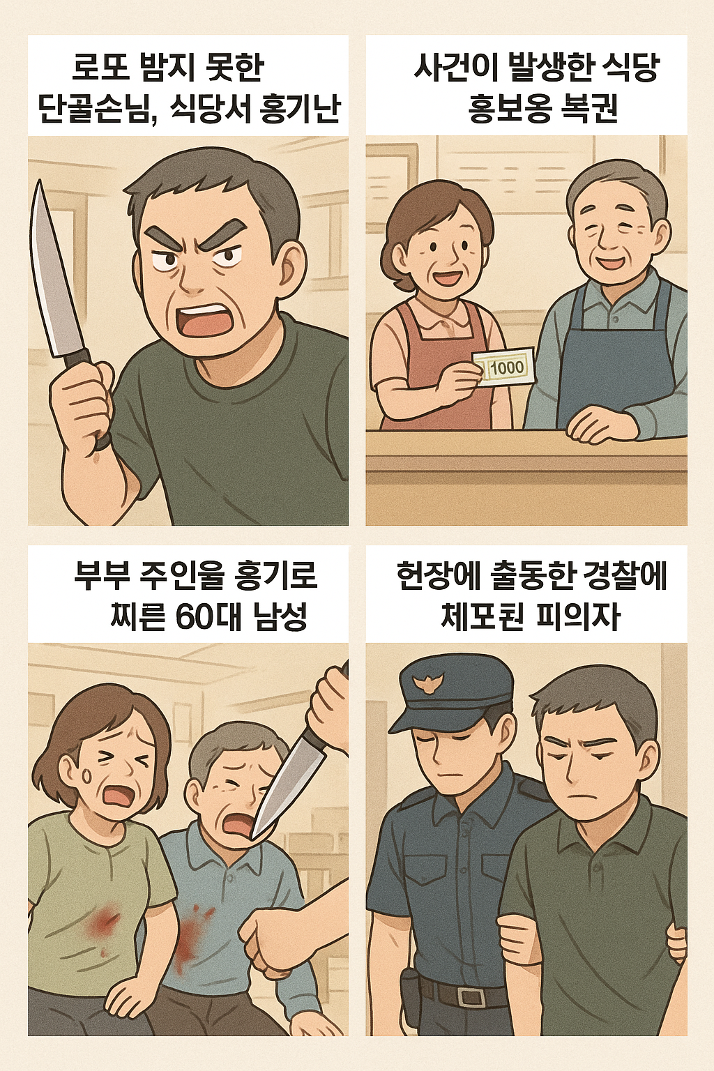 10월 26일 오후 2시경, 60대 남성 A씨가 식당 주인 부부를 흉기로 찌르는 사건이 발생했으며