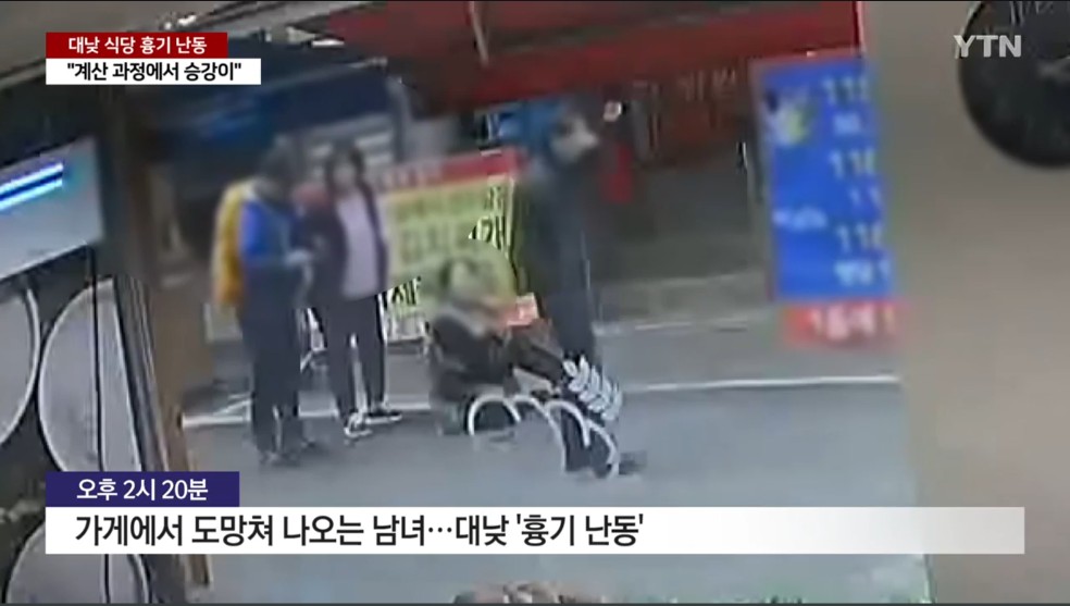 갑자기 흉기를 꺼내 식당 주인 부부를 향해 휘둘렀다.