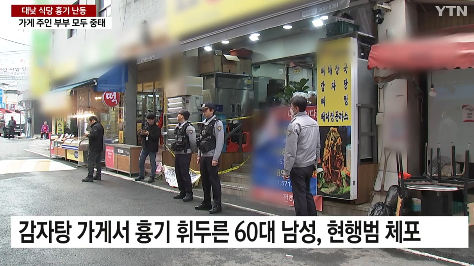갑자기 흉기를 꺼내 식당 주인 부부를 향해 휘둘렀다.