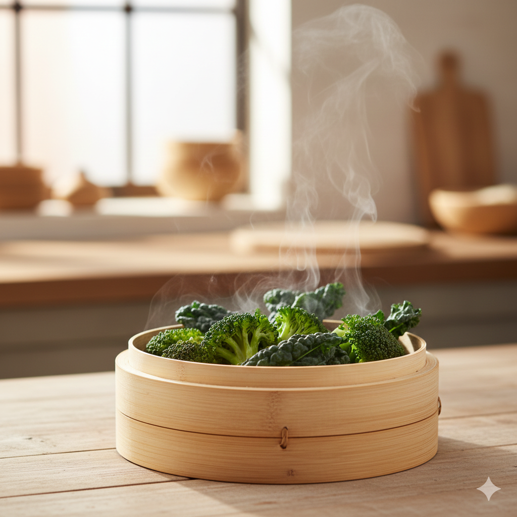 * 채소 데치기: 브로콜리와 케일은 끓는 물에 1분 내외로 살짝 데쳐 고이트로젠을 제거합니다.