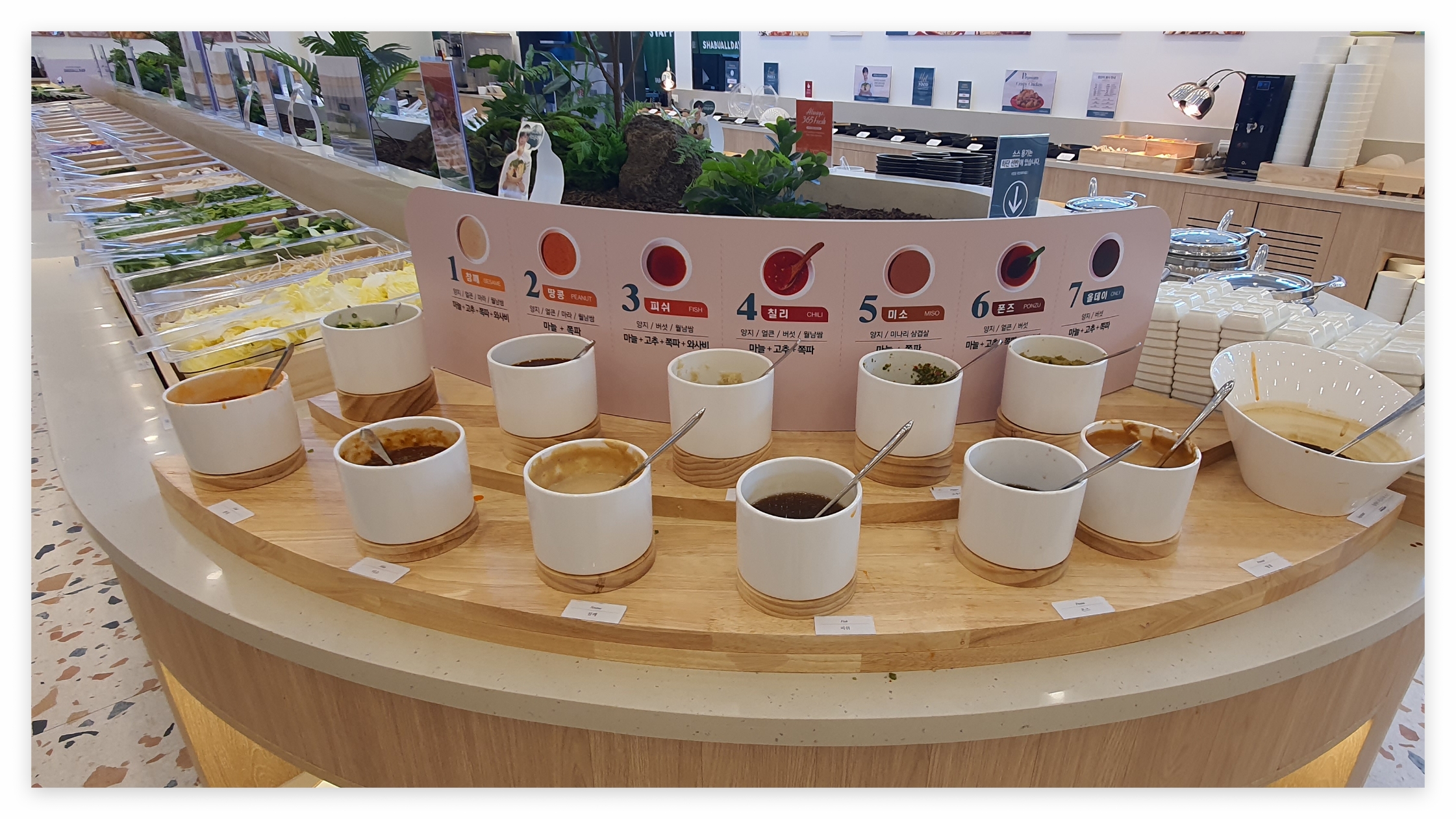 소스입니다. 샤브 올데이는 전문 셰프가 개발한 10여 가지의 특제 소스를 제공합니다.