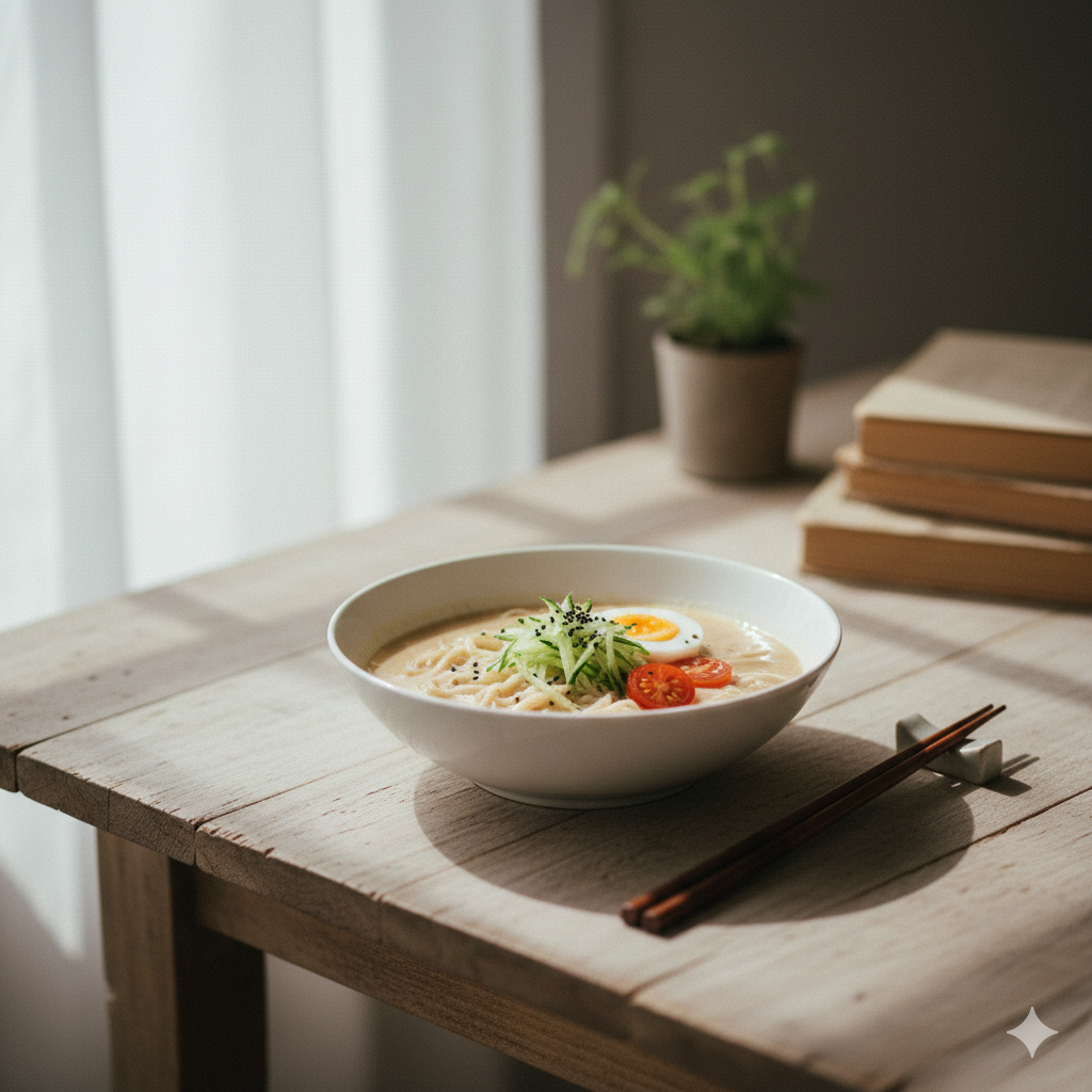 여기에 땅콩버터(Peanut Butter) 한 큰술을 더하면 감칠맛과 보디감이 극대화되어, 마치 고급 중식당의 탄탄면 국물처럼 묵직하고 중독성 있는 국물 맛이 완성됩니다.