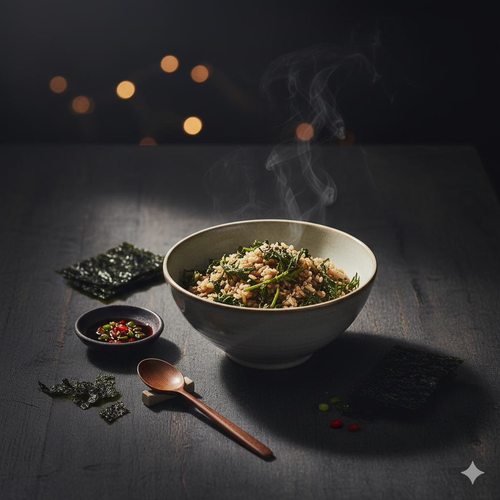 * 구운 김: 양념장을 곁들인 곤드레밥을 살짝 구운 곱창김에 싸 먹으면 별미입니다.