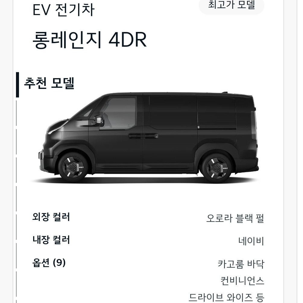 패신저 모델은 아직 국내 가격이 미정이지만, 카고 모델과 유사한 수준에서 책정될 가능성이 높습니다.