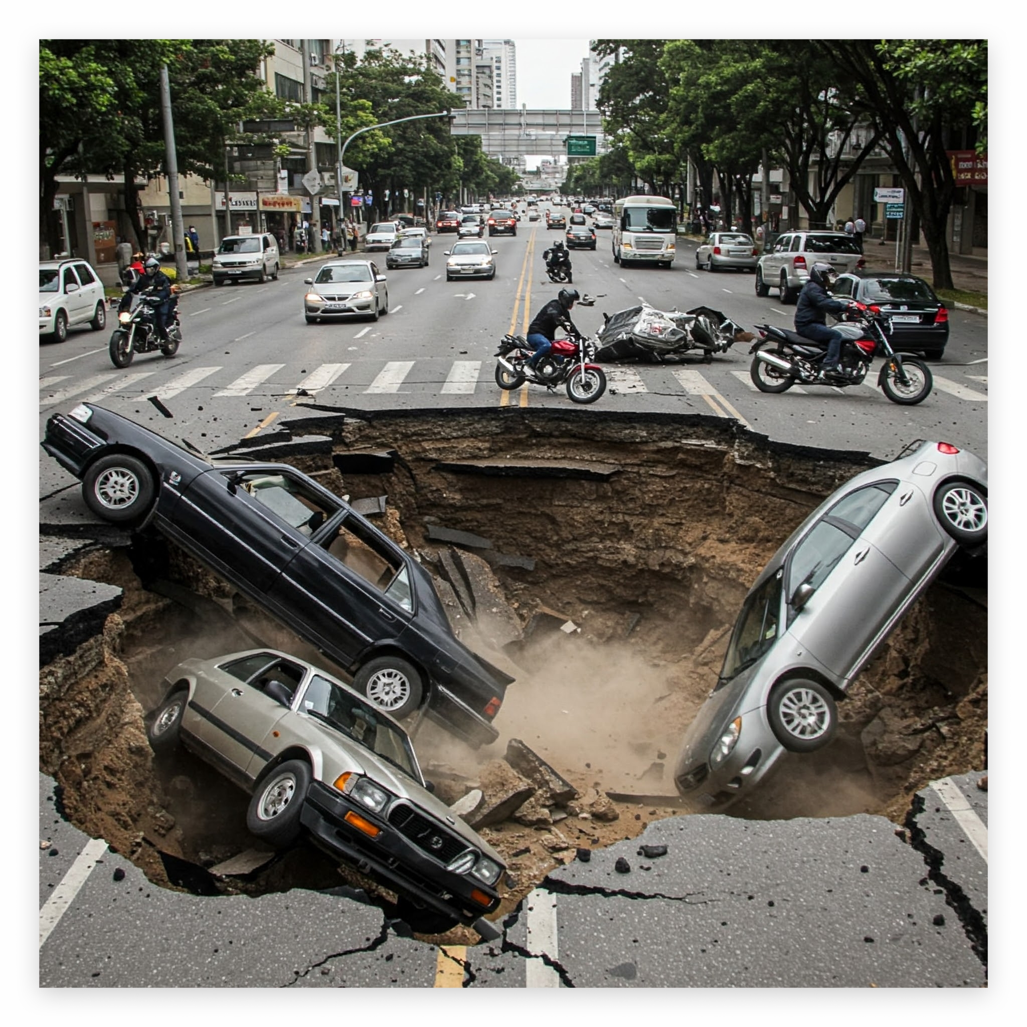 갑작스러운 싱크홀 발생으로 인해 도로를 지나가던 오토바이가 추락하는 사고가 발생했으며, 다행히 인명 피해는 1명으로 그쳤으나, 추가적인 매몰자가 있을 가능성을 배제할 수 없어 구조 작업이 진행 중입니다.