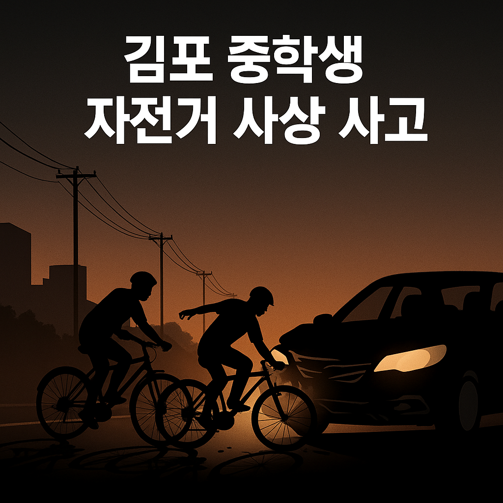 2025년 11월 12일 오후 6시 34분경, 김포시 고촌읍 태리 편도 2차로 도로에서 13세 중학생 두 명이 자전거를 타고 이동하던 중, 20대 운전자가 몰던 승용차가 자전거 두 대를 그대로 들이받는 사고가 발생했다.