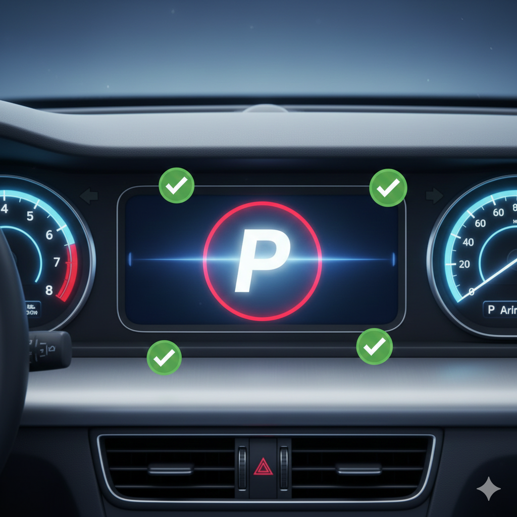 : 차에서 내리기 전, 계기판에 표시된 기어 위치가 'P'로 정확히 표시되어 있는지 육안으로 반드시 확인해야 합니다.