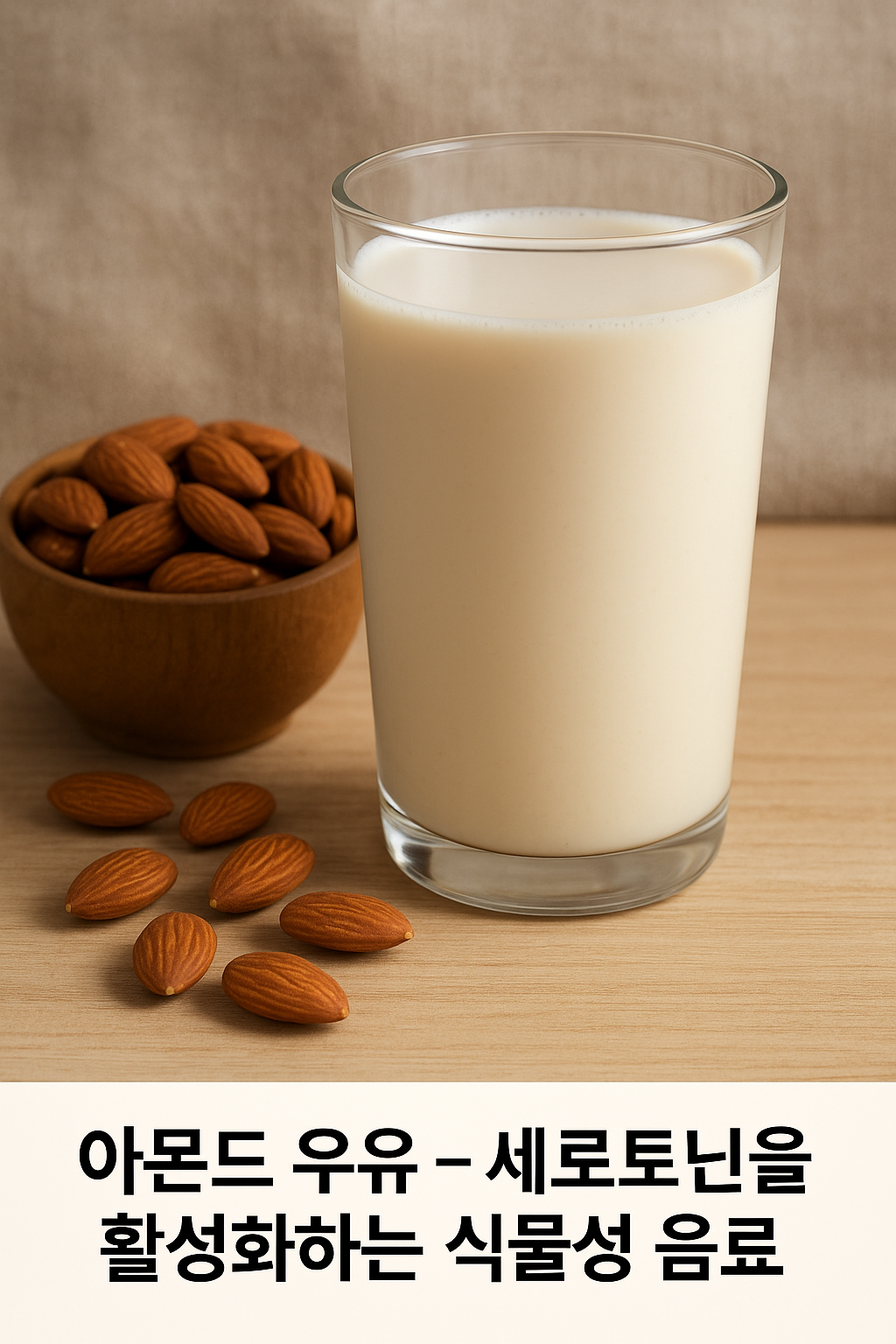 🌰 4. 아몬드 우유 – 세로토닌을 활성화하는 식물성 음료