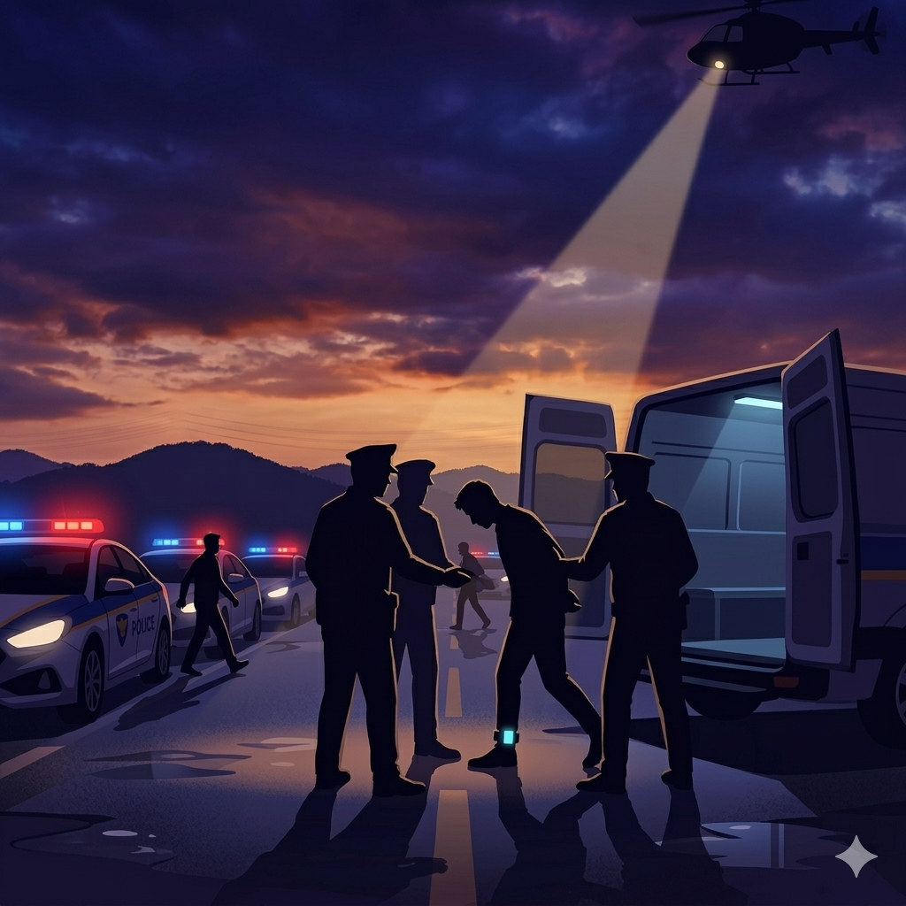 경찰은 보호관찰소와의 공조를 통해 실시간 위치를 추적했고, 도주 1시간여 만에 용문면 인근에서 그를 검거했습니다.