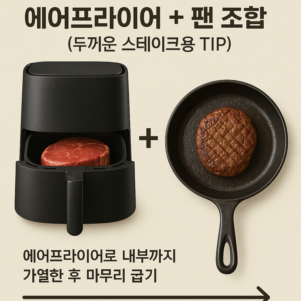 📌 7. 에어프라이어 + 팬 조합(두꺼운 스테이크용 TIP)