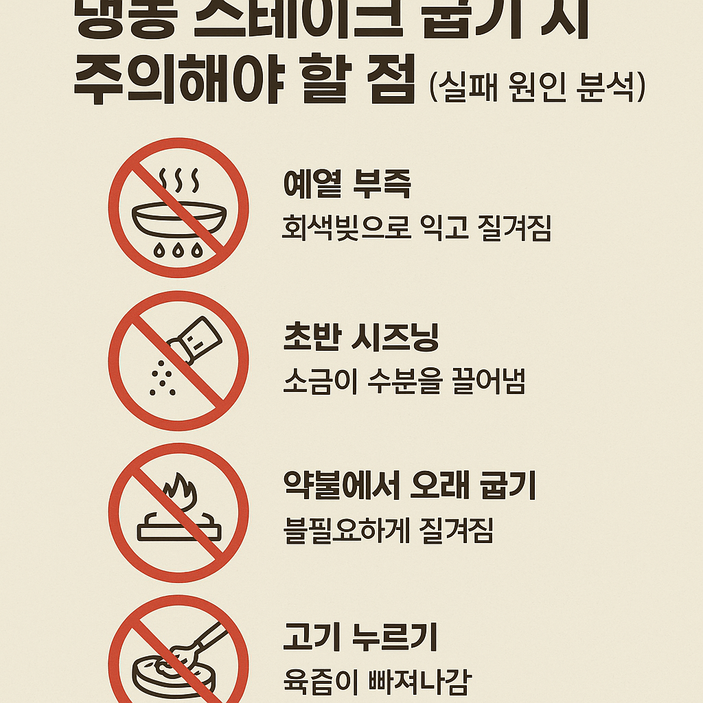 ⚠ 6. 냉동 스테이크 굽기 시 주의해야 할 점(실패 원인 분석)