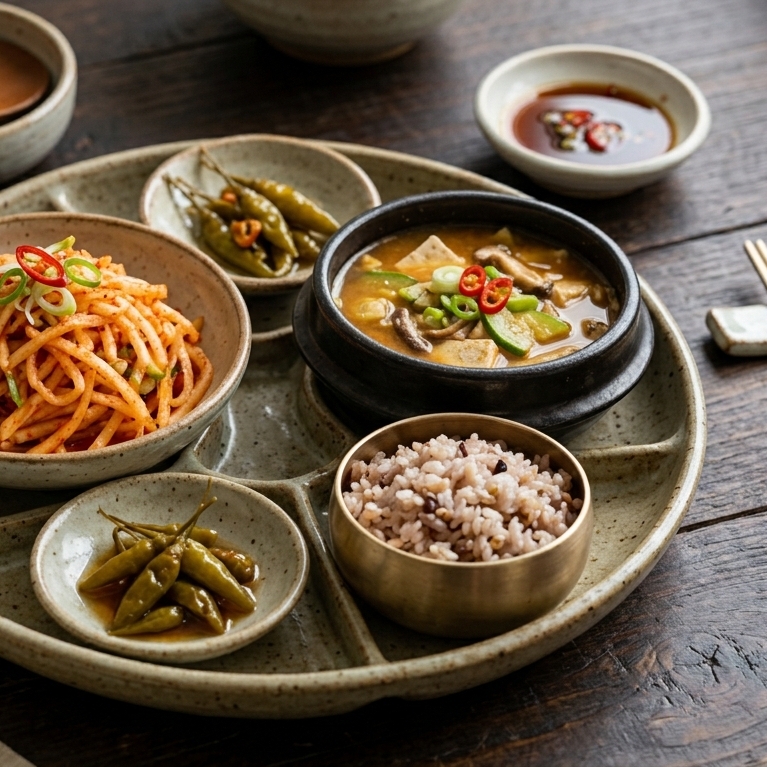 * 칼칼한 된장찌개: 구수한 된장찌개 국물과 조기 살 한 점은 한국인이 가장 사랑하는 조합입니다.