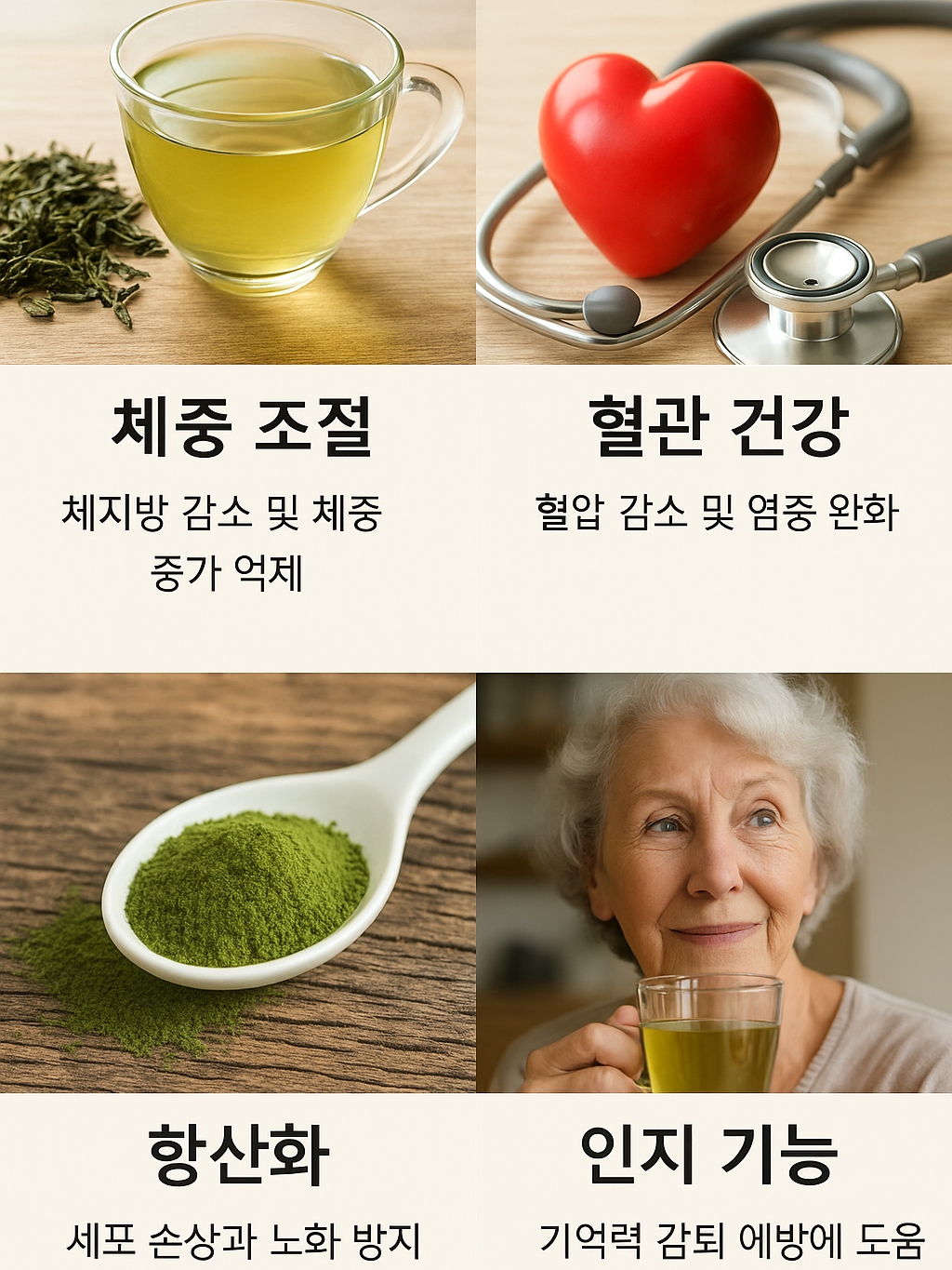 녹차 특유의 떫은맛을 만드는 카테킨과 다양한 폴리페놀 성분이 체내 염증을 줄이고 혈관 기능을 보호하며, 신진대사를 활성화하는 역할을 한다.
