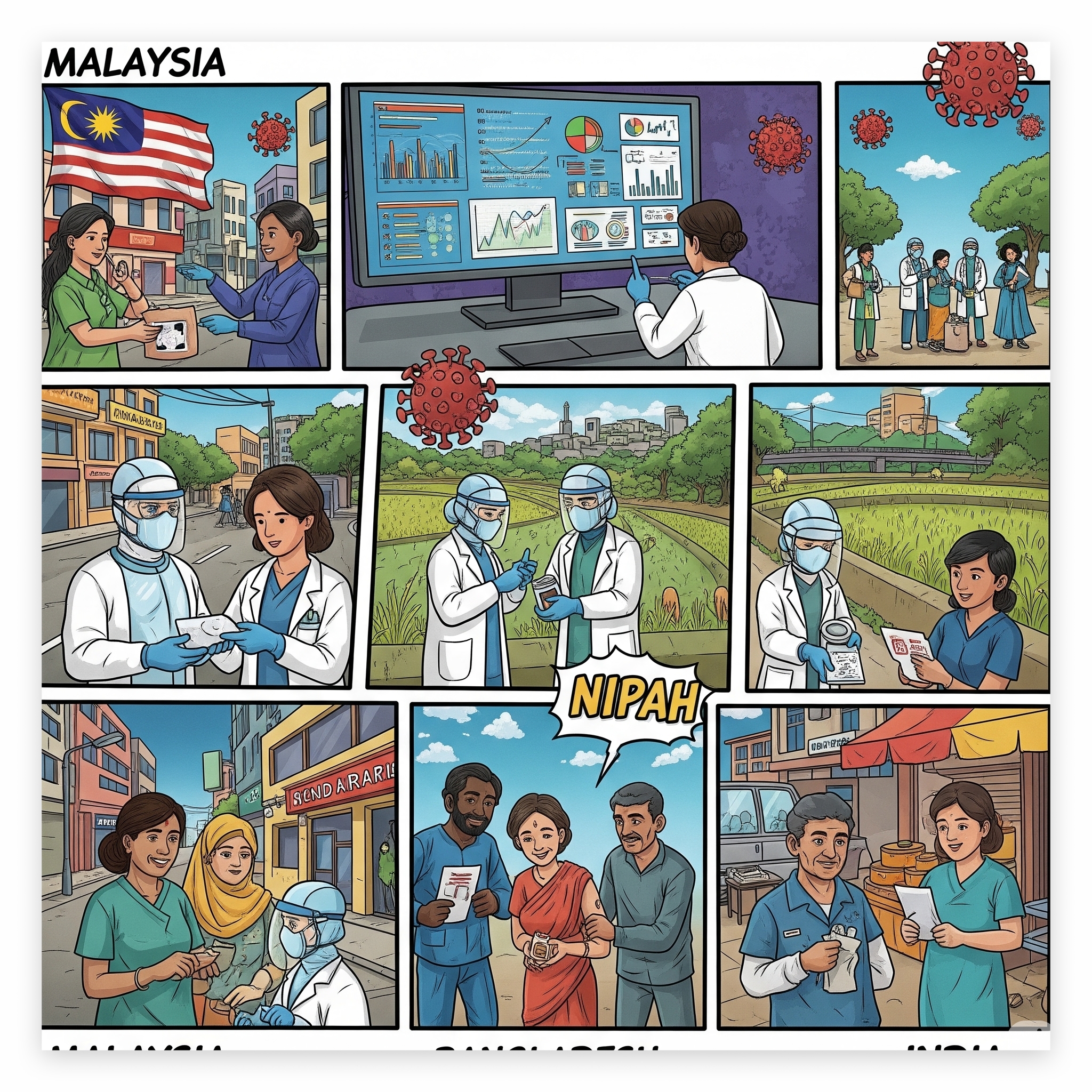 방글라데시와 인도에서 발생한 유행에서는 인간 간 전파가 더 빈번하게 관찰되었으며, 특히 가족 내 전파 사례가 다수 보고되었습니다.
