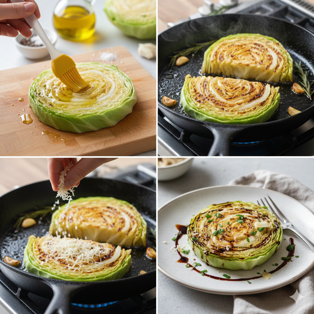 * 불 조절이 생명: 양배추는 당분이 많아 센 불에서 쉽게 탑니다. 중약불에서 은근하게 익혀 속까지 부드럽게 만드는 것이 핵심입니다.