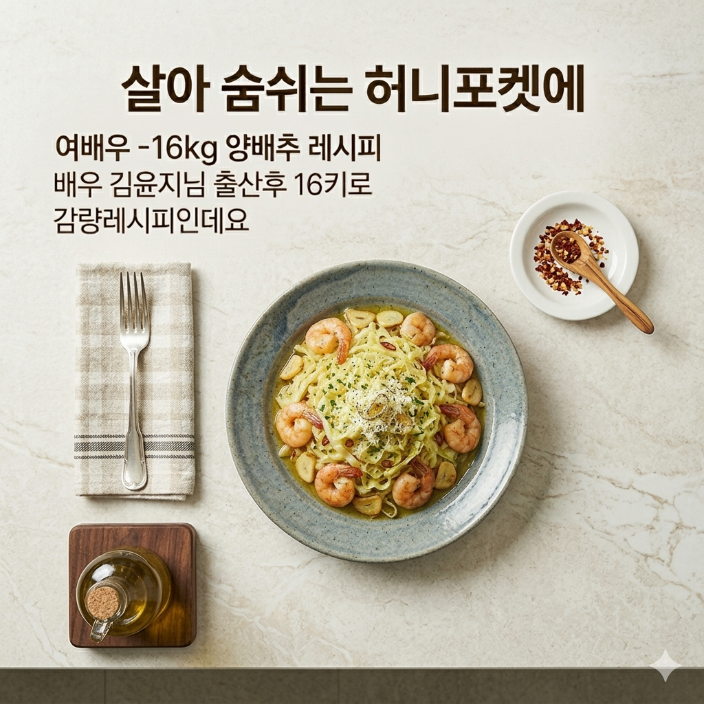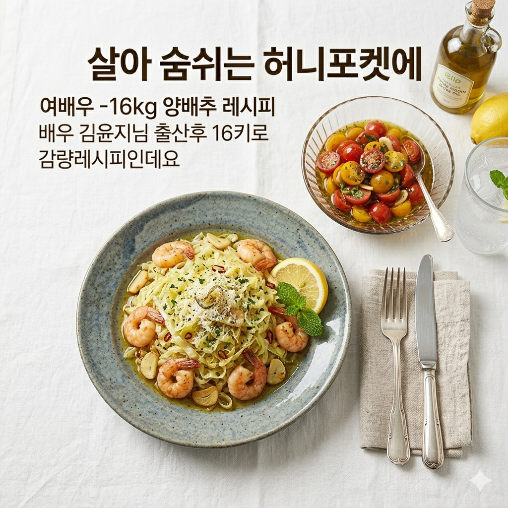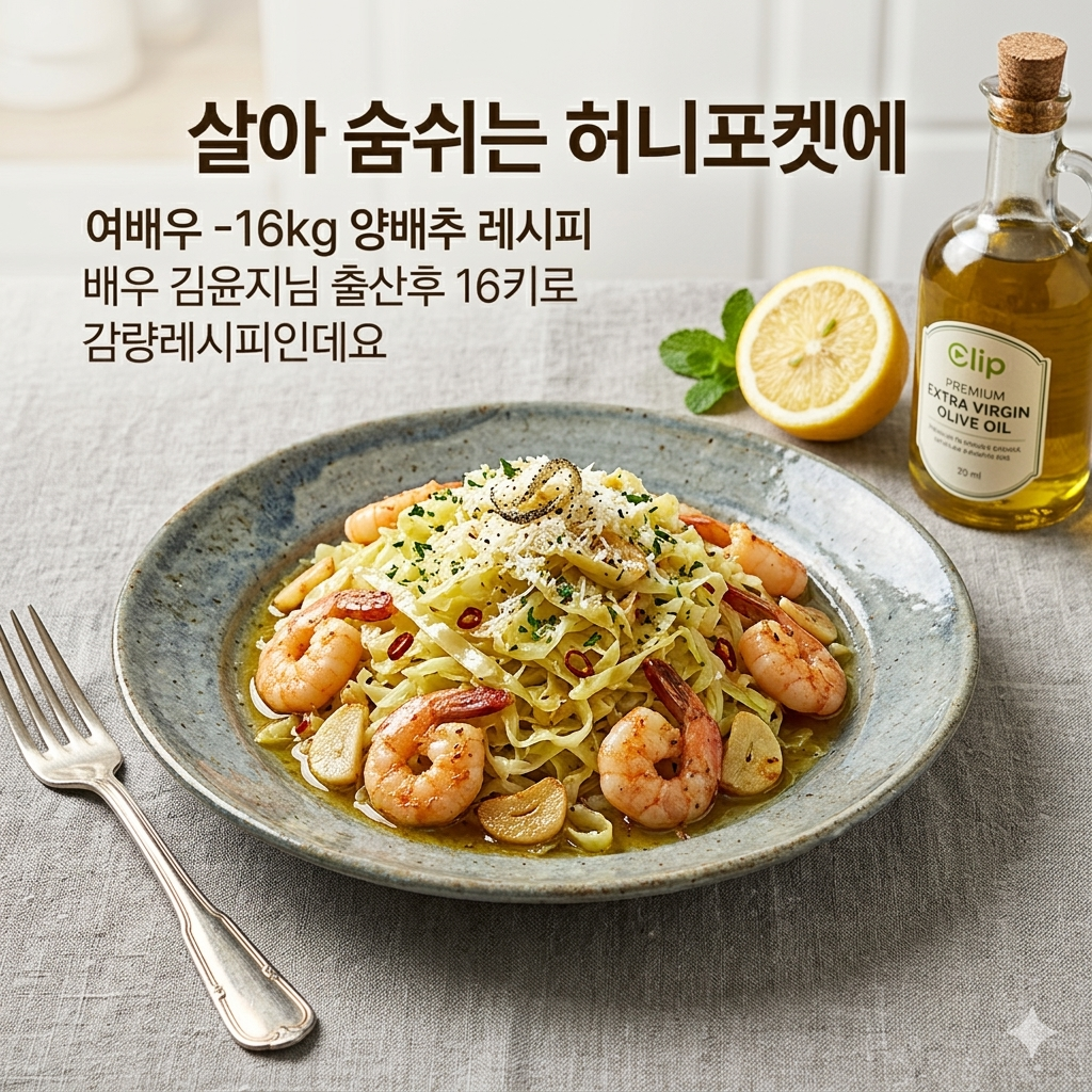 최근 화제가 된 배우 김윤지님의 출산 후 16kg 감량 비결, 바로 면 없이 즐기는 '양배추 파스타'입니다.
