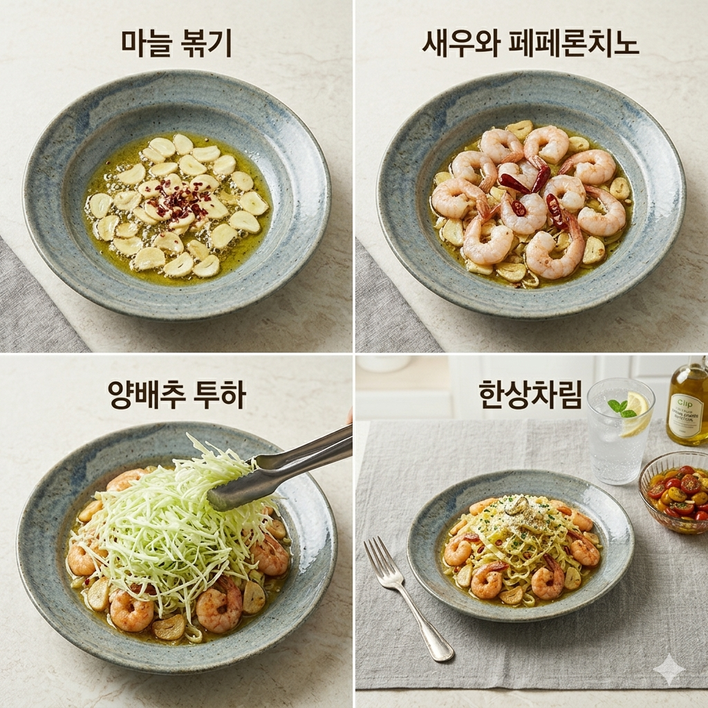 면 없는 '양배추 알리오올리오' 파스타 만들기