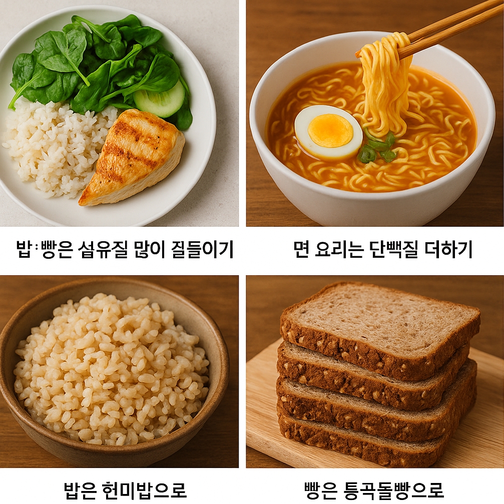 🍚 1️⃣ 밥·빵 먹을 땐 ‘섬유질’이 답이다