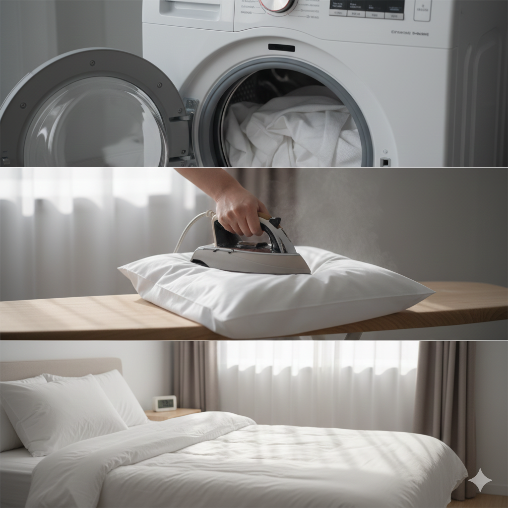 베개 솜은 세탁이 어렵고 내부 포자를 완전히 제거하기 힘듭니다.
