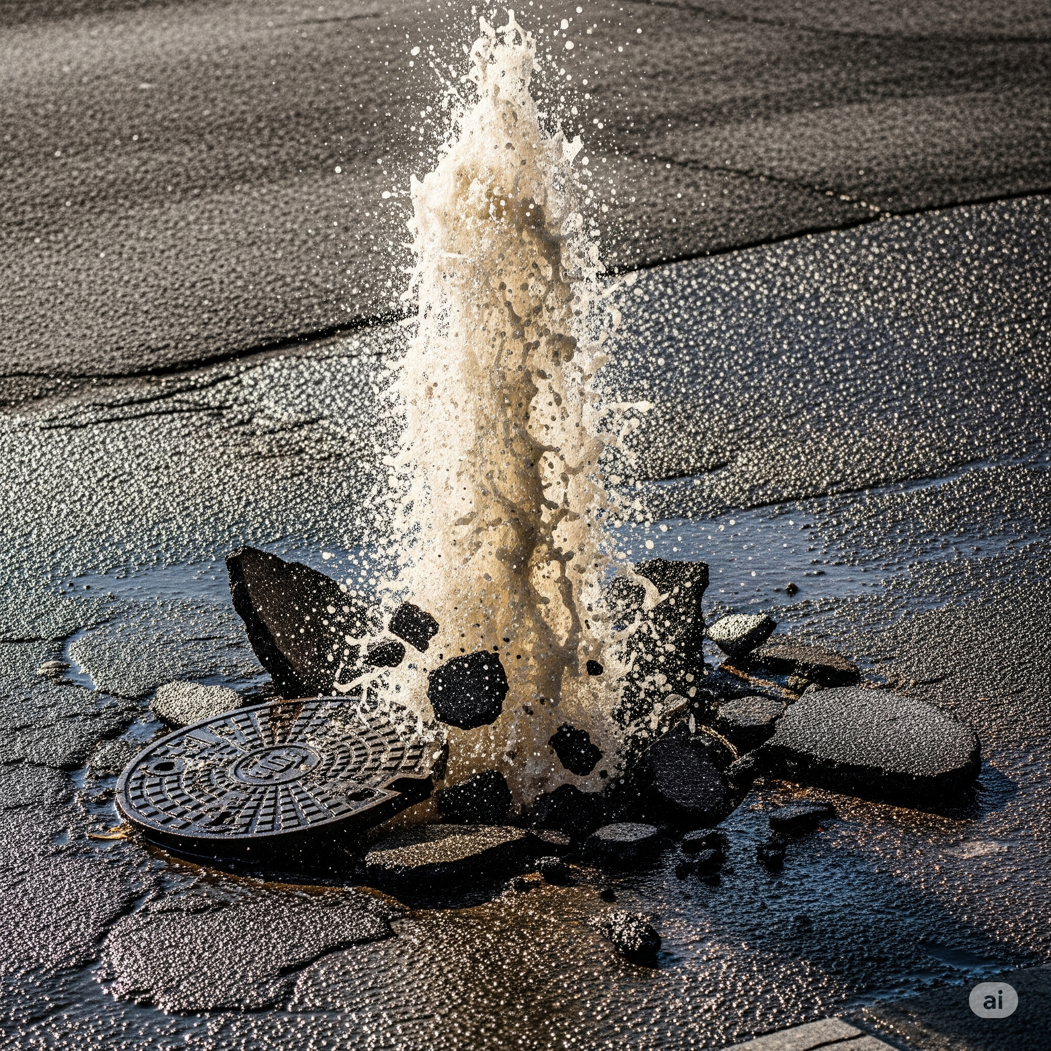 2. 맨홀 뚜껑 '펑'! 물기둥과 아스팔트 파편까지