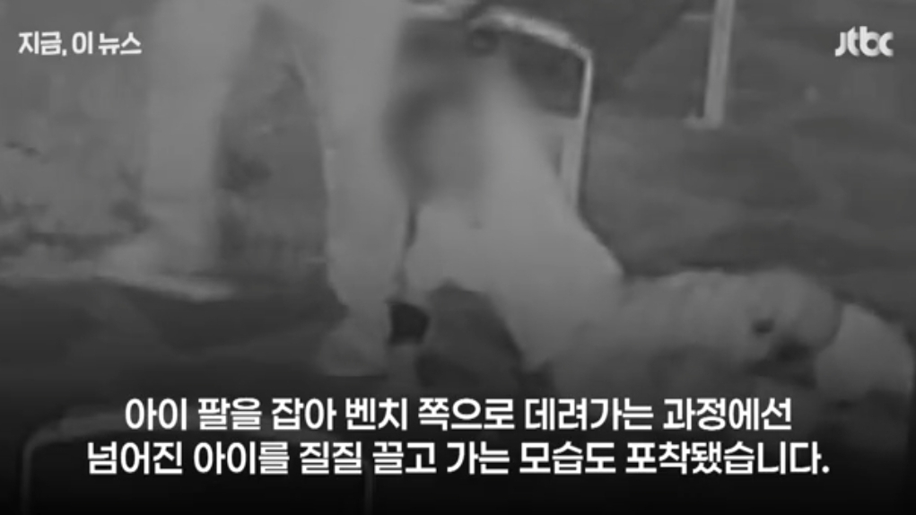 이 남성 A씨는 아이가 인라인스케이트를 제대로 타지 못한다는 이유로 수차례 손과 발로 때리고, 질질 끌며 공원 벤치 쪽으로 이동했습니다.