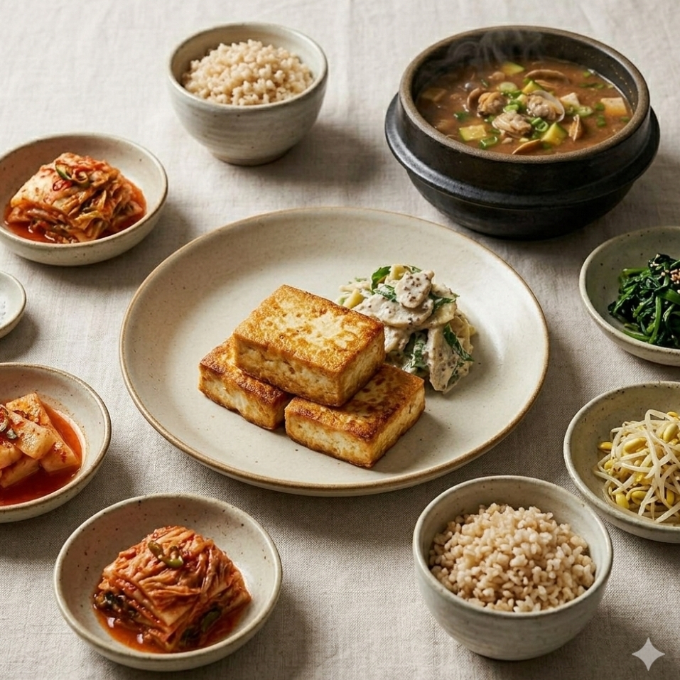 이 식단은 담백함이 특징이므로, 약간의 칼칼함이나 감칠맛이 있는 메뉴와 잘 어울립니다.