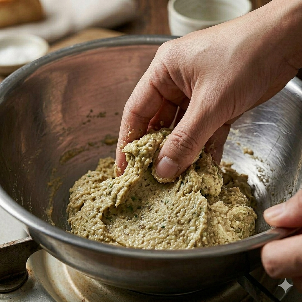 물기를 꽉 짠 머위를 먹기 좋은 크기로 썹니다. 준비한 들깨가루, 국간장, 마늘 등을 넣고 조물조물 버무립니다. 이때 들깨가루를 넉넉히 넣어야 두부의 담백함과 조화를 이루는 고소한 풍미가 극대화됩니다.