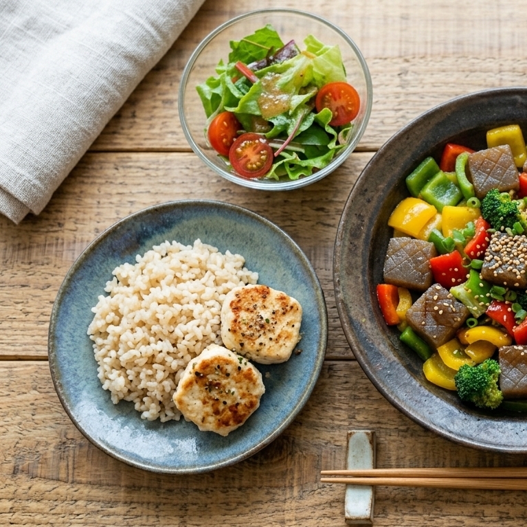 * 현미밥 또는 곤약밥: 든든한 한 끼를 원하신다면 식이섬유가 풍부한 곡물을 추가하세요.