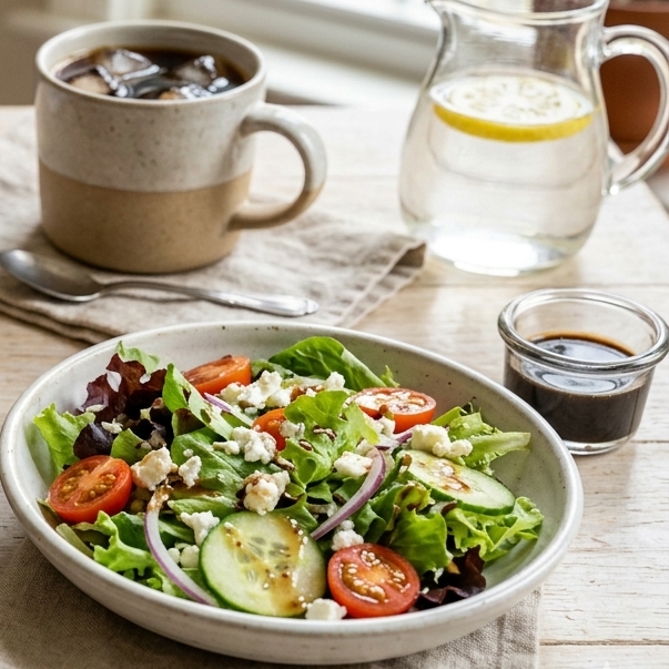 * 상큼한 발사믹 그린 샐러드: 어린잎 채소에 방울토마토를 곁들여 입안을 개운하게 하세요.