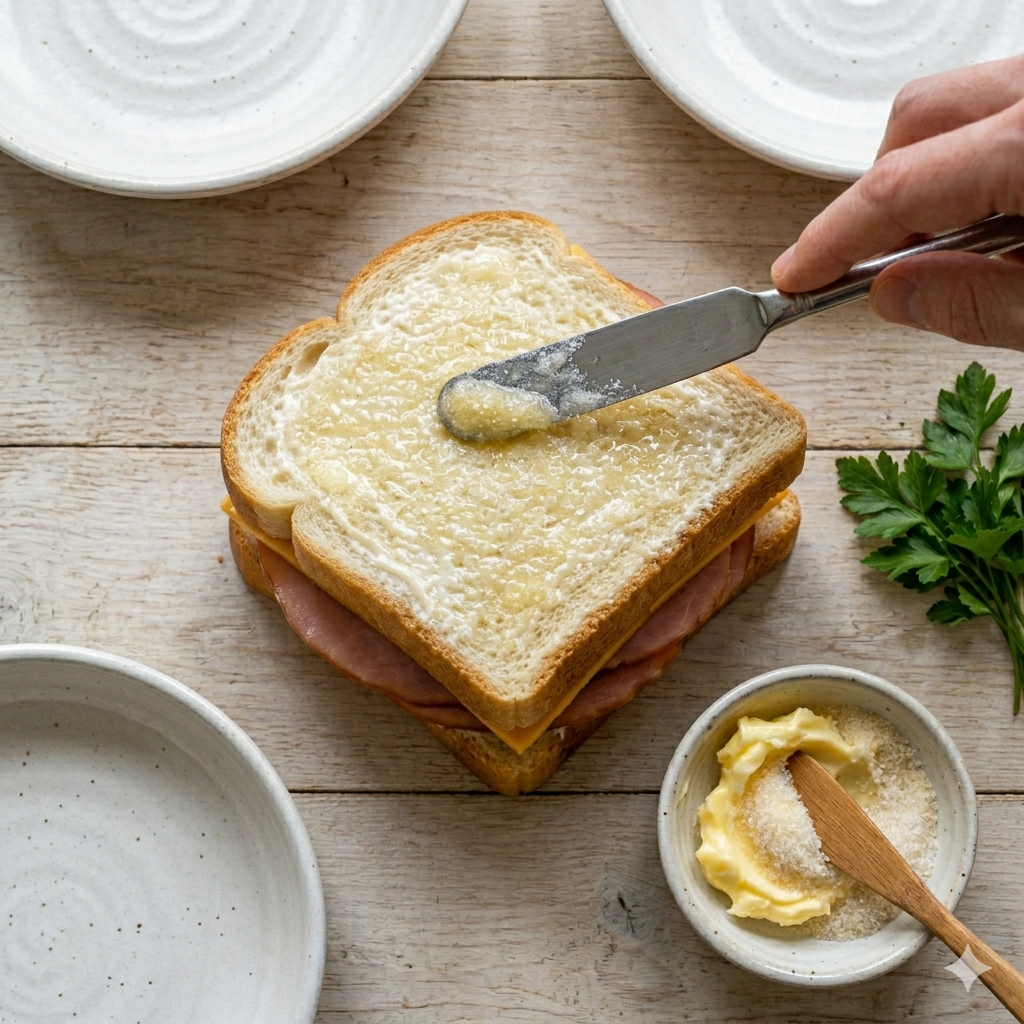 마요네즈는 단순히 맛을 내는 용도가 아니라, 열이 가해졌을 때 빵의 수분 증발을 막고 풍미를 가두는 보호막 역할을 합니다.