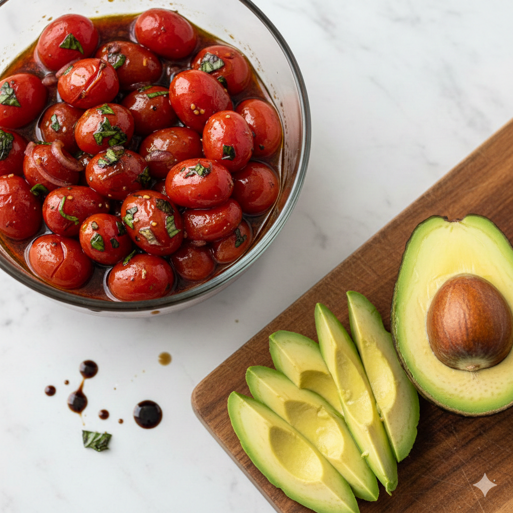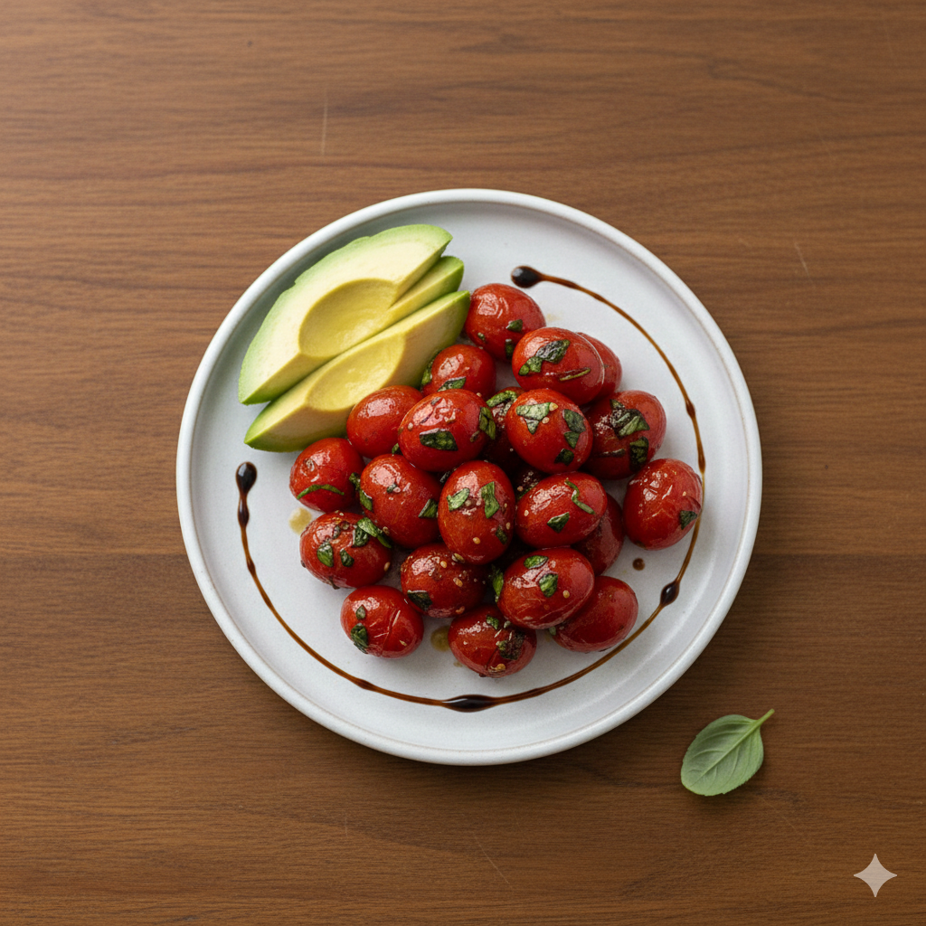 발사믹 식초의 깊은 풍미와 토마토의 라이코펜이 만나 영양학적으로도 완벽한 조화를 이루죠.