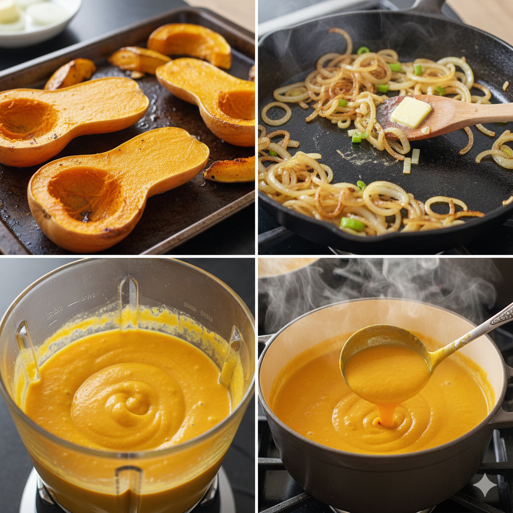 보통 단호박을 물에 삶거나 찌는 방식을 많이 사용하시지만, '구워서' 만드는 스프는 차원이 다른 깊은 풍미와 당도를 선사합니다.