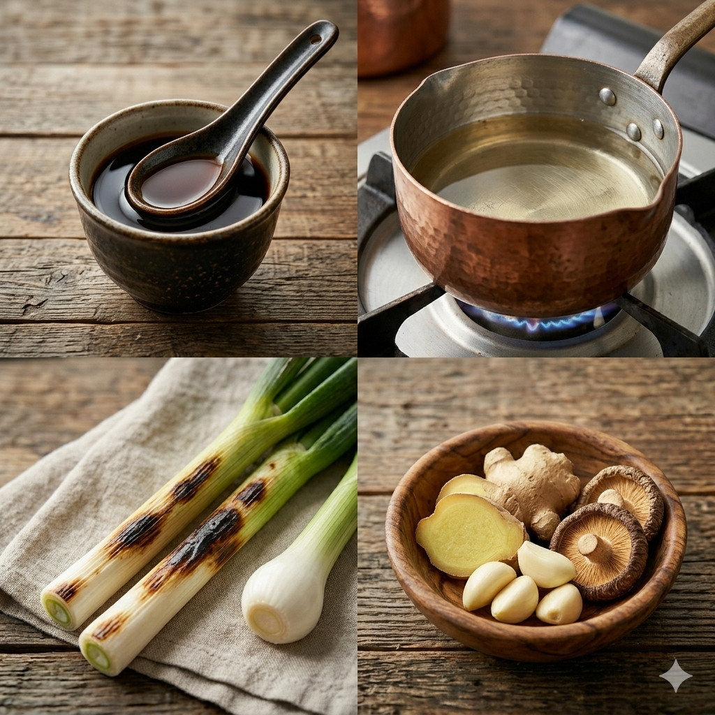 반면, 직접 만드는 타레소스는 메일라드 반응(Maillard Reaction)을 극대화한 구운 채소와 발효 간장의 풍미가 어우러져 차원이 다른 깊이를 선사합니다.