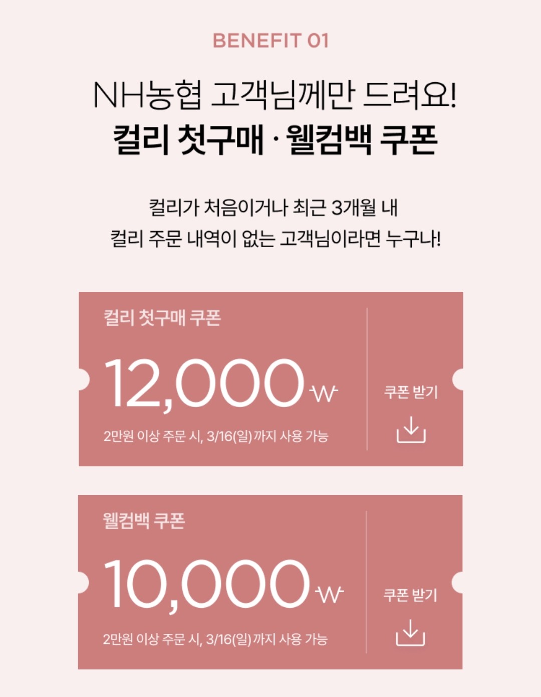 이번에 진행하는 마켓컬리에서의 NH농협 고객 전용 할인 혜택은 3월 16일까지만 진행되는 한정 이벤트인 점 참고하시고 서두르세요.