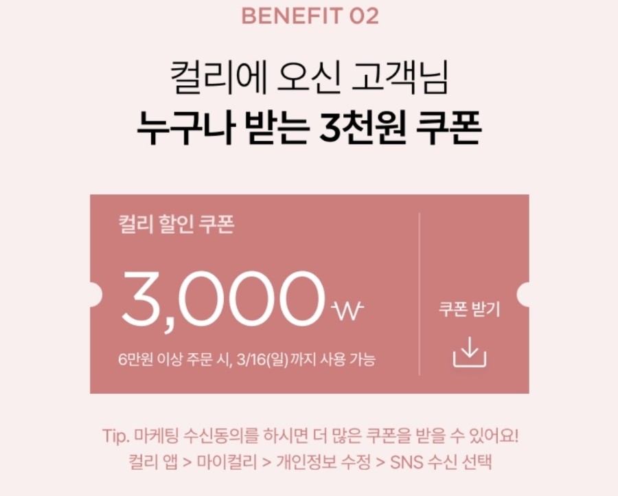 - 쿠폰 다운로드 및 사용 기간 : 3월 10일(월) ~ 3월 16일(일)