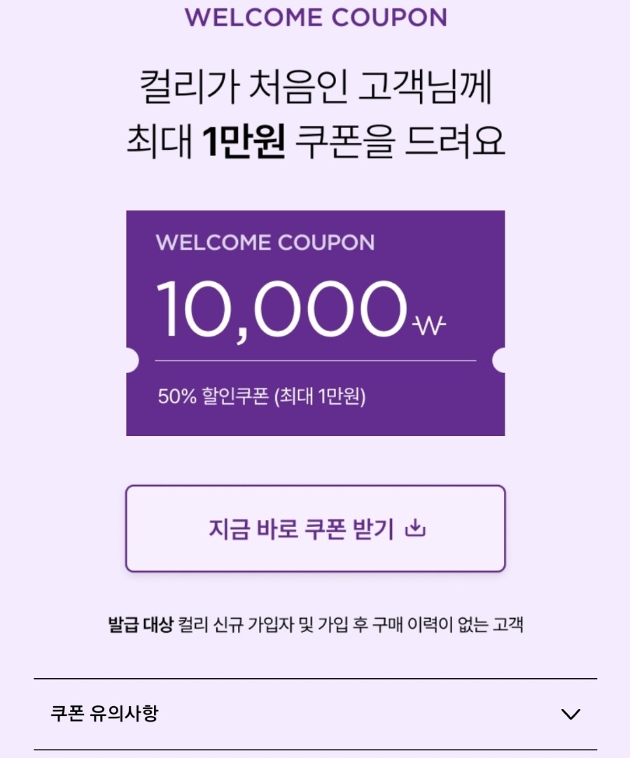 지금 가입하고 최대 1만 원 할인 쿠폰을 받으세요! 마켓컬리에 처음 가입하는 분들께 드리는 특별한 웰컴 혜택입니다. 마켓컬리의 신선한 식재료와 다양한 상품을 더욱 저렴하게 경험해 볼 수 있는 절호의 기회죠.