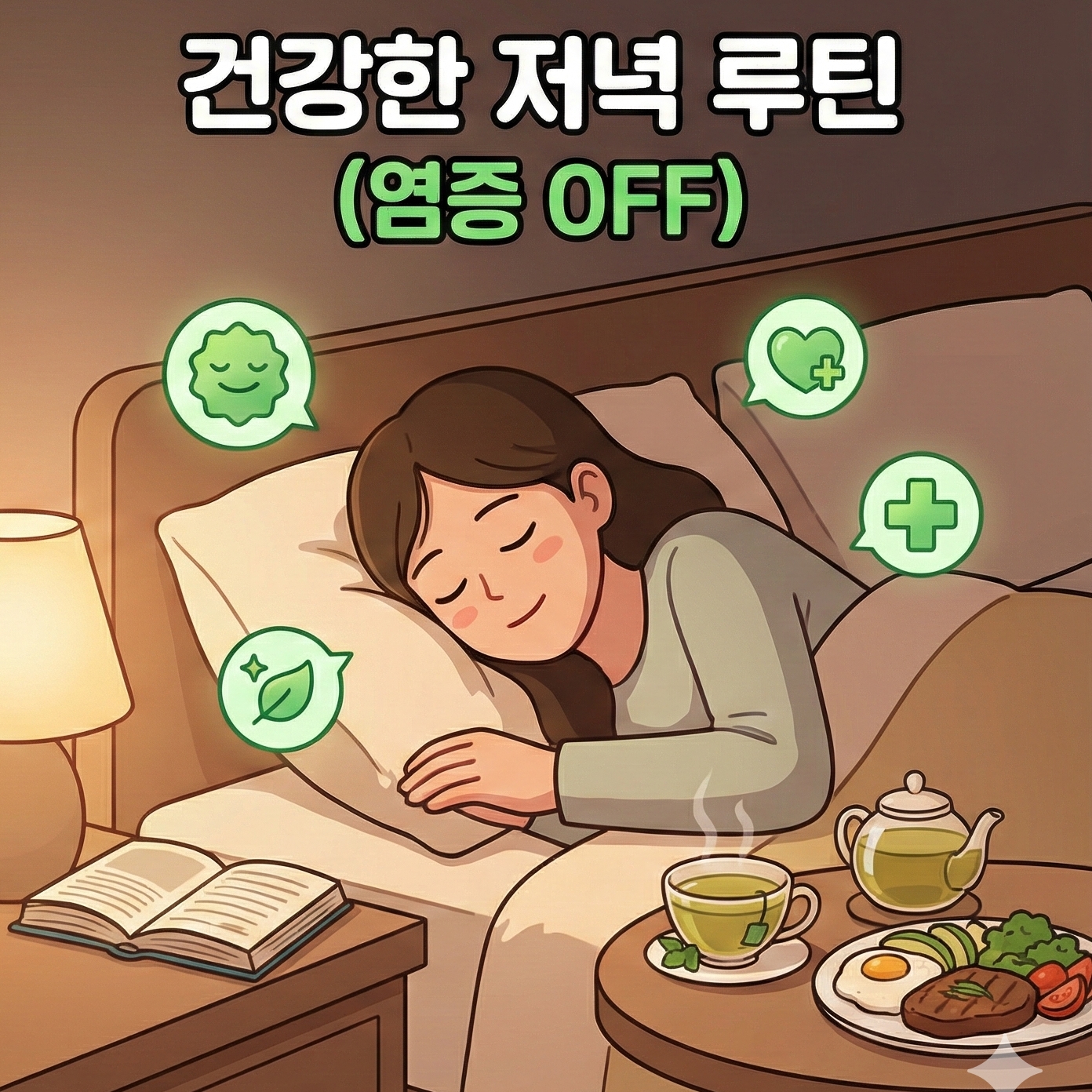 : 최소 7시간 이상의 수면을 확보해야 합니다. 잠이 부족하면 식욕 조절이 안 되어 야식을 찾게 되고, 스트레스 호르몬이 증가하여 염증 수치가 다시 높아지는 악순환이 반복됩니다.