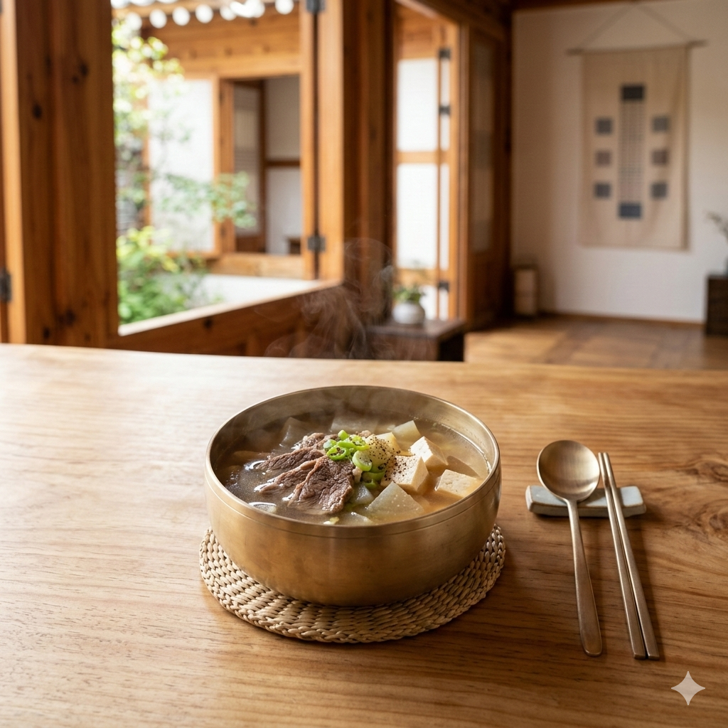 탕국은 단순해 보이지만, 국물이 탁해지지 않게 끓이는 '맑은 육수'의 기술과 소고기의 깊은 감칠맛을 끌어내는 것이 핵심입니다.