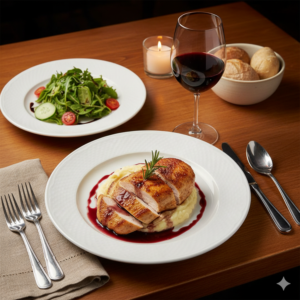 * 레드 와인 소스(Bordelaise): 닭고기 위에 진한 와인 소스를 곁들이면 고급스러운 산미가 더해집니다.