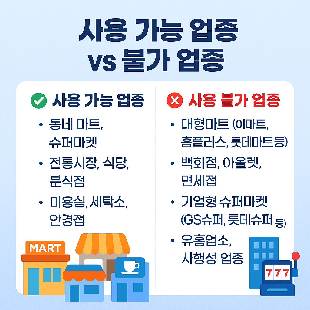 그래서 이번 글에서는 소비쿠폰의 사용 가능 업종, 사용 불가 매장, 주의사항을 한눈에 정리해드립니다.